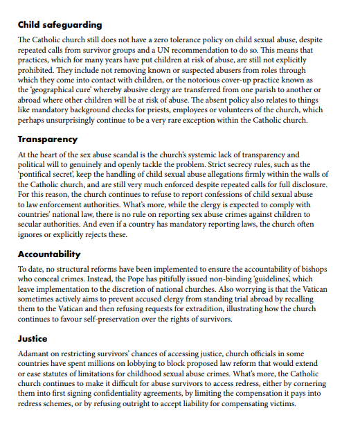 Five years since the Holy See's last report to the UN on its human rights record. Did they listen? Accountability for priests who conceal crimes ❌ Remove abusers from roles that have contact with children ❌ End the "geographical cure" ❌ https://home.crin.org/briefing-paper-the-holy-see-and-the-united-nations … #PBC2019pic.twitter.com/gyyPSpahD7