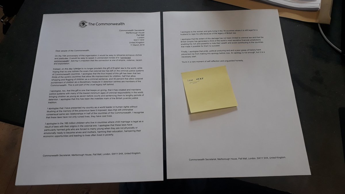 We've drafted the kind of apology the @commonwealthsec should be issuing this #CommonwealthDay. The legacy of the #ConnectedCommonwealth is one of discrimination and cruelty. Read the full apology here: https://home.crin.org/the-commonwealth-an-apology …pic.twitter.com/hd7CtPZr1O