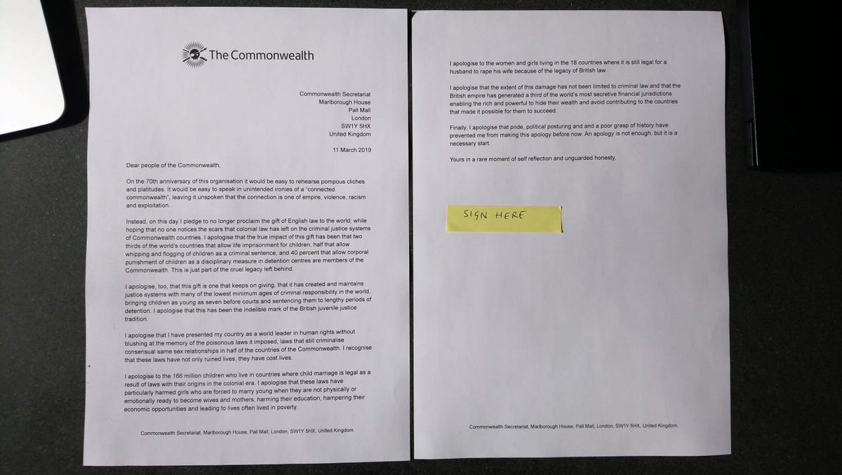 Will it be to apologise on behalf of the @commonwealthsec for the legacy of Britain's empire? If so, we recommend it sound something like this http://home.crin.org/commonwealth pic.twitter.com/3HyqZ0sXq9