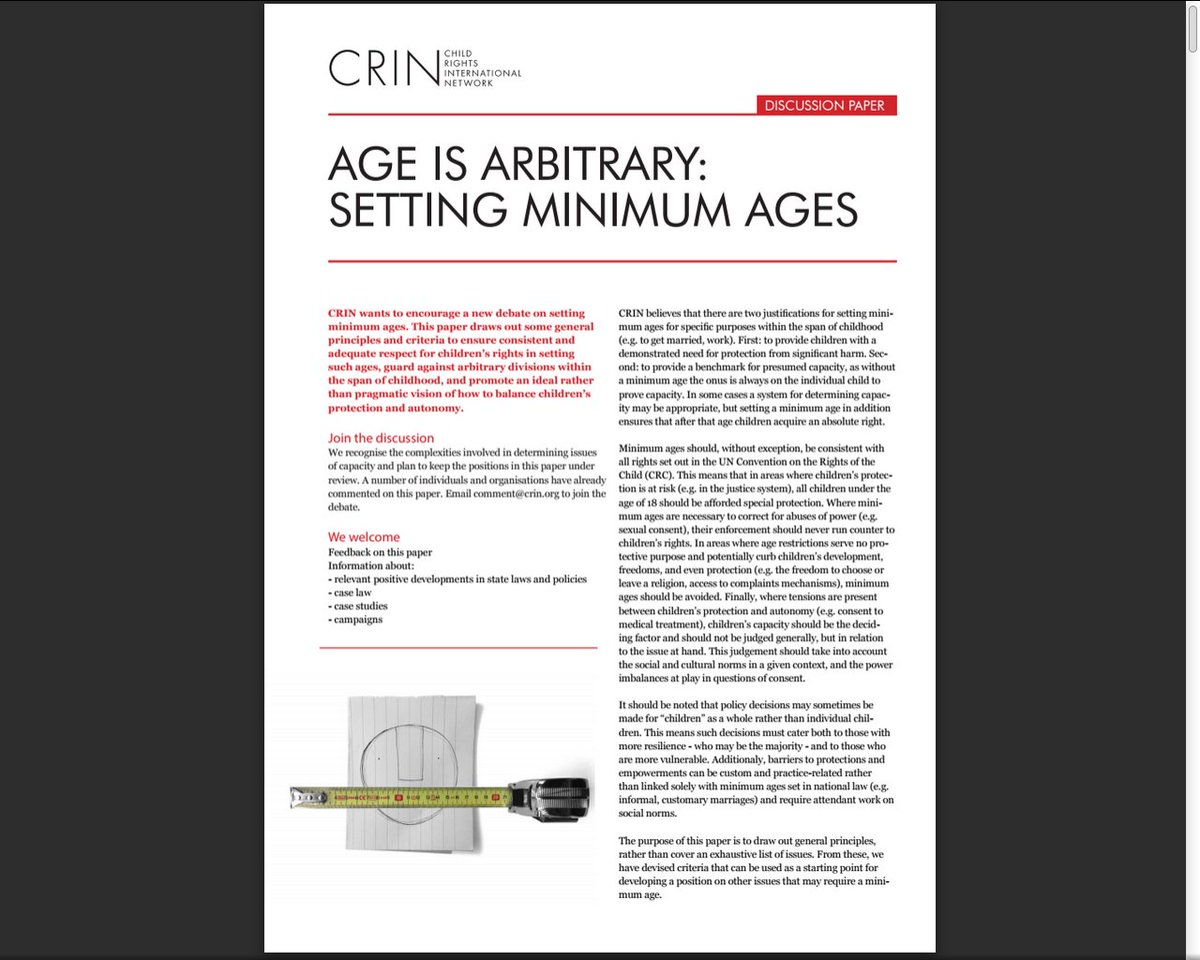 When are #MinimumAges arbitrary & when are they in children's best interest? Our paper here: https://www.crin.org/en/node/42453/ pic.twitter.com/QsvxpIVI39