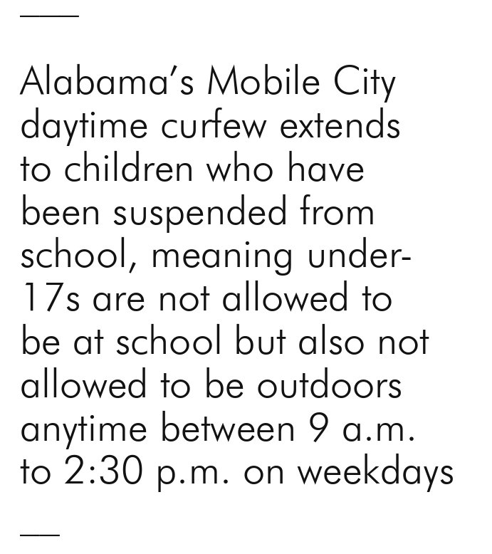 US: 100+ cities had daytime curfews in 2009. These discriminate & infringe on civil liberties of children.pic.twitter.com/z6DNxzFdFw