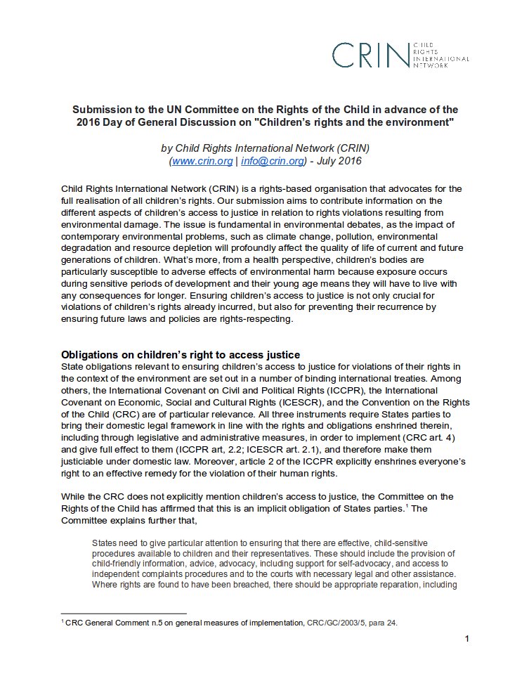 CRIN submission to @UN Day of General Discussion on Children's Rights & Environment: https://www.crin.org/sites/default/files/crin_submission_crc_environment.pdf.pdf … #DGD16pic.twitter.com/C4ESELvjWp