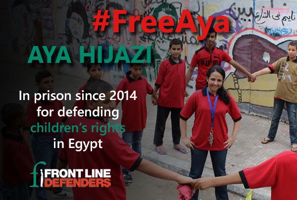 This #UniversalChildrensDay, tell #Egypt to #FreeAya. In prison since 2014 for defending #childrights. https://medium.com/@FrontLineDefenders/free-egyptian-child-rights-defender-aya-hijazi-on-un-childrens-day-f4fe08123f52#.ygp5rkqq8 … @FrontLineHRDpic.twitter.com/XDhUEoyuCe