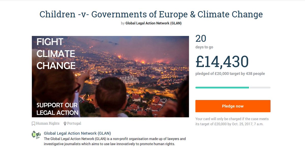 Portuguese kids crowdfund to sue EU countries for climate inaction . More than £14,000 now raised! http://www.climatechangenews.com/2017/09/25/portuguese-children-launch-crowdfunding-campaign-climate-lawsuit/ …pic.twitter.com/ak522Ufpsp