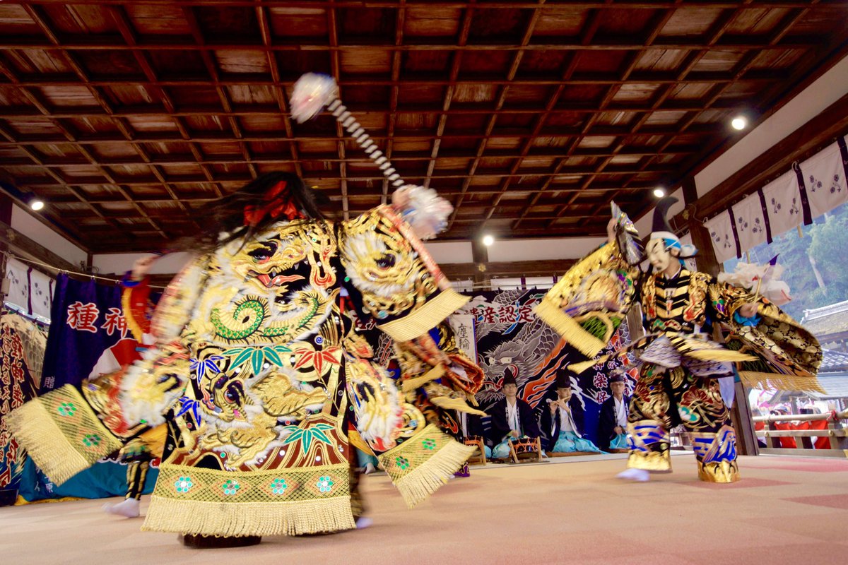 #松尾大社#節分祭#石見神楽 奉納が始まりました。 最前中央