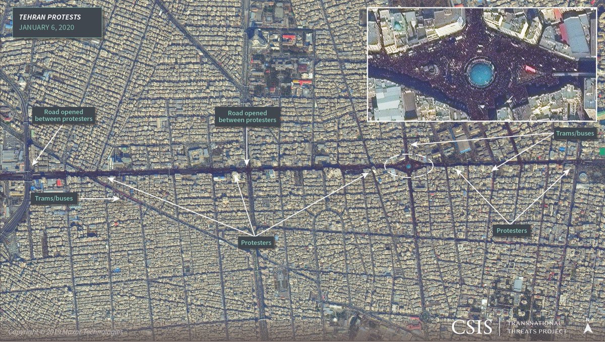 Satellite imagery suggests that a crowd of approximately 1.3 million people attended Qasem Soleimani's funeral in Tehran on January 6. Read the