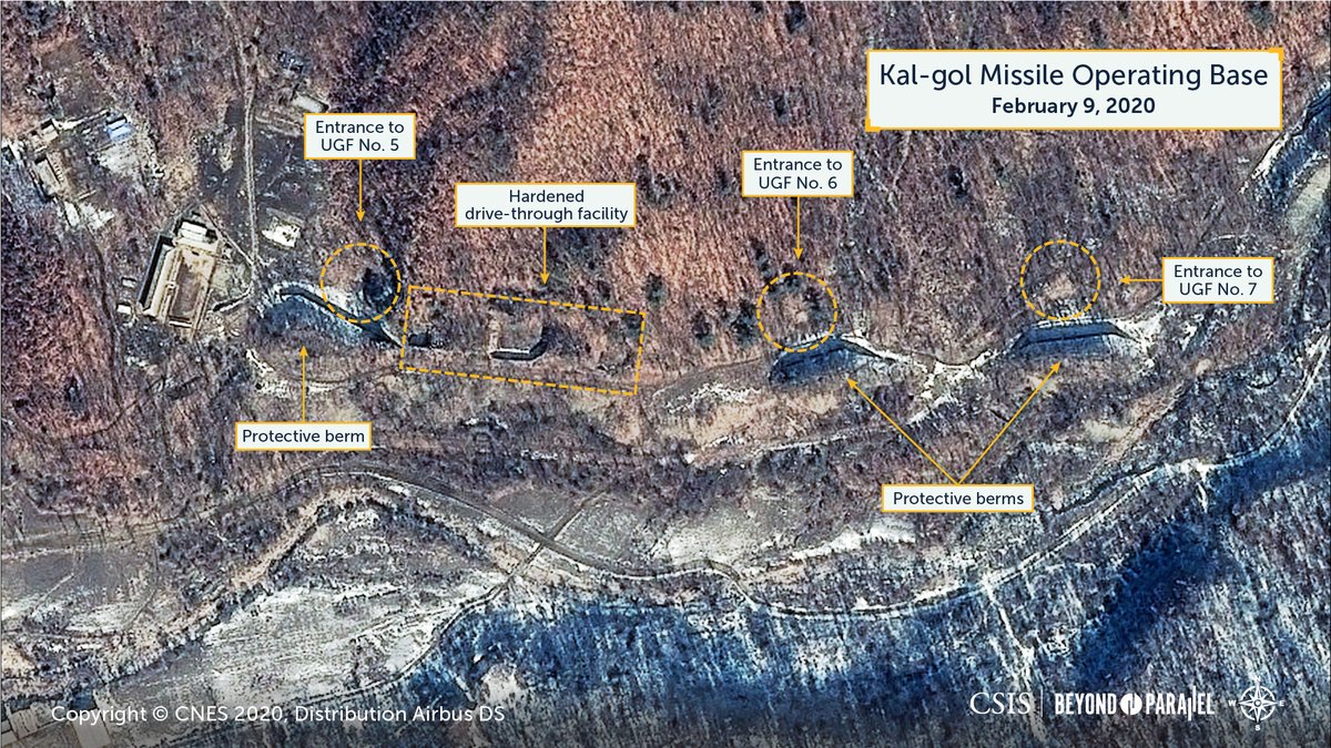 Kal-gol currently contains 10 underground facilities which could house missiles and 9-12 transporter-erector-launchers (TEL) and mobile-erector-launchers (MEL) of various sizes, and 3 drive-through facilities (2 hardened against preemptive attack).