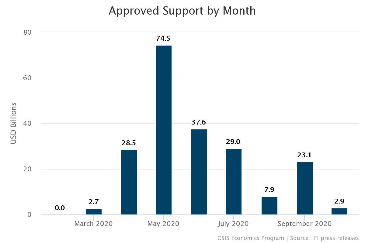 According to @CSIS_Econ’s latest update, the pace of new financing approvals to combat Covid-19 has increased across international financial institutions for the first time since May.