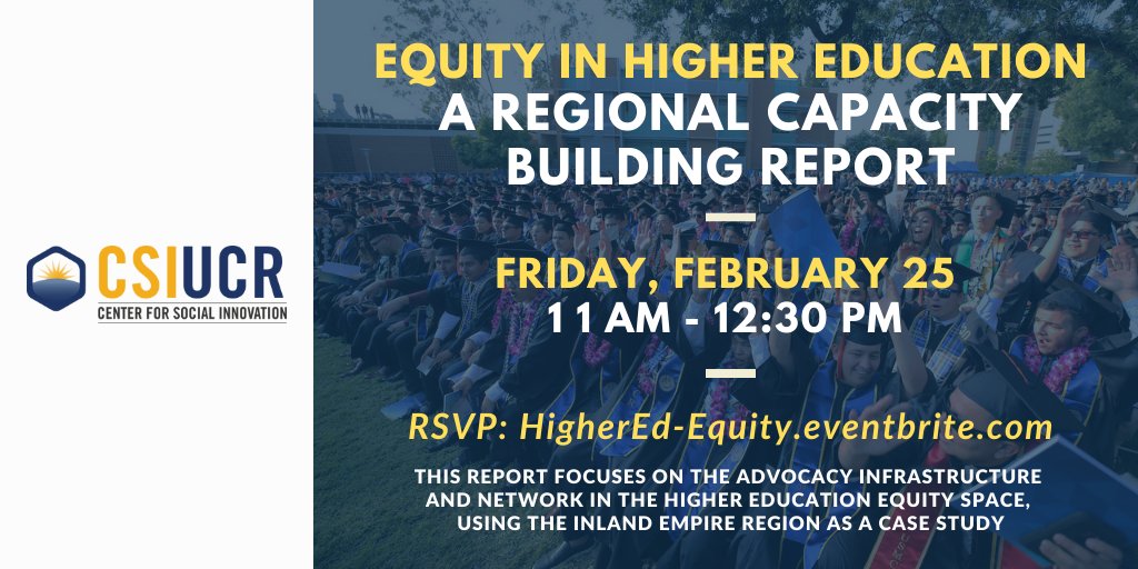 Twitter: Join us on Friday, February 25, at 11 AM (PST) as we discuss a new report that focuses on the advocacy infrastructure and network in the higher education equity space, using the Inland Empire region as a case study. LINK: http://ie-higher-ed-equity.eventbrite.com pic.twitter.com/VGGcA0z0rh