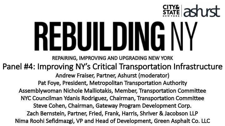 Last but certainly not least... our final panel of the day is about improving New York's transportation! @PatFoye @MTA @NMalliotakis @ydanis @GatewayProgNews @friedfrank #RebuildingNYpic.twitter.com/lRsBoz5F9g