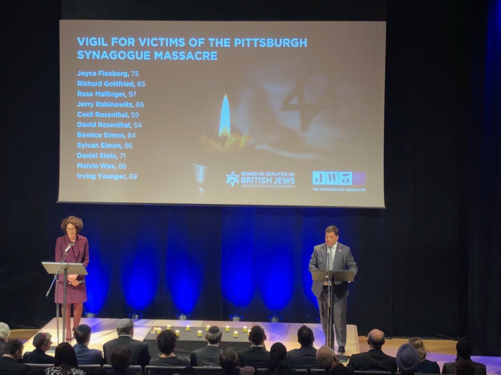 @CST_UK and speak at this evenings very moving ”Vigil for Victims of the Pittsburgh Synagogue Massacre”. Thank you@JW3London and@BoardofDeputies for organising the evening and to all the fantastic speakers.pic.twitter.com/RaRIqiPTwu