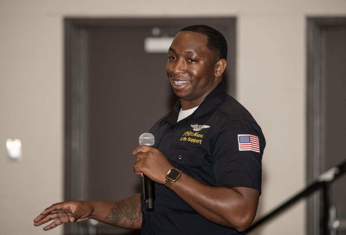 @blueangels. He, along with PR1(AW) Javarius Means, addressed attendees in Lightsey Chapel today. The Blue Angels will perform at the Joint Base Charleston Air Expo this weekend.pic.twitter.com/tyE04AipfV