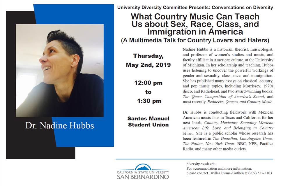 UDC Conversations on Diversity Presents: What Country Music Can Teach Us about Sex, Race, Class and Immigration in America” (A Multimedia Talk for Country Lovers and Haters)pic.twitter.com/AYou0wwmTH