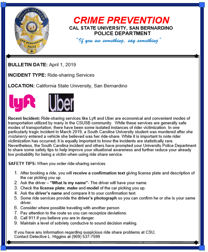 Here's a crime prevention tip regarding safety with rideshare services like lyft and uber. Stay safe, Yotes!pic.twitter.com/iyO5mx3Xmt