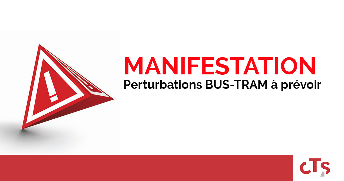 La circulation de certaines lignes de tram et de bus risque d'être perturbée entre 14h & 17h (horaires susceptibles d'évoluer en fonction du déroulement de la manifestation).