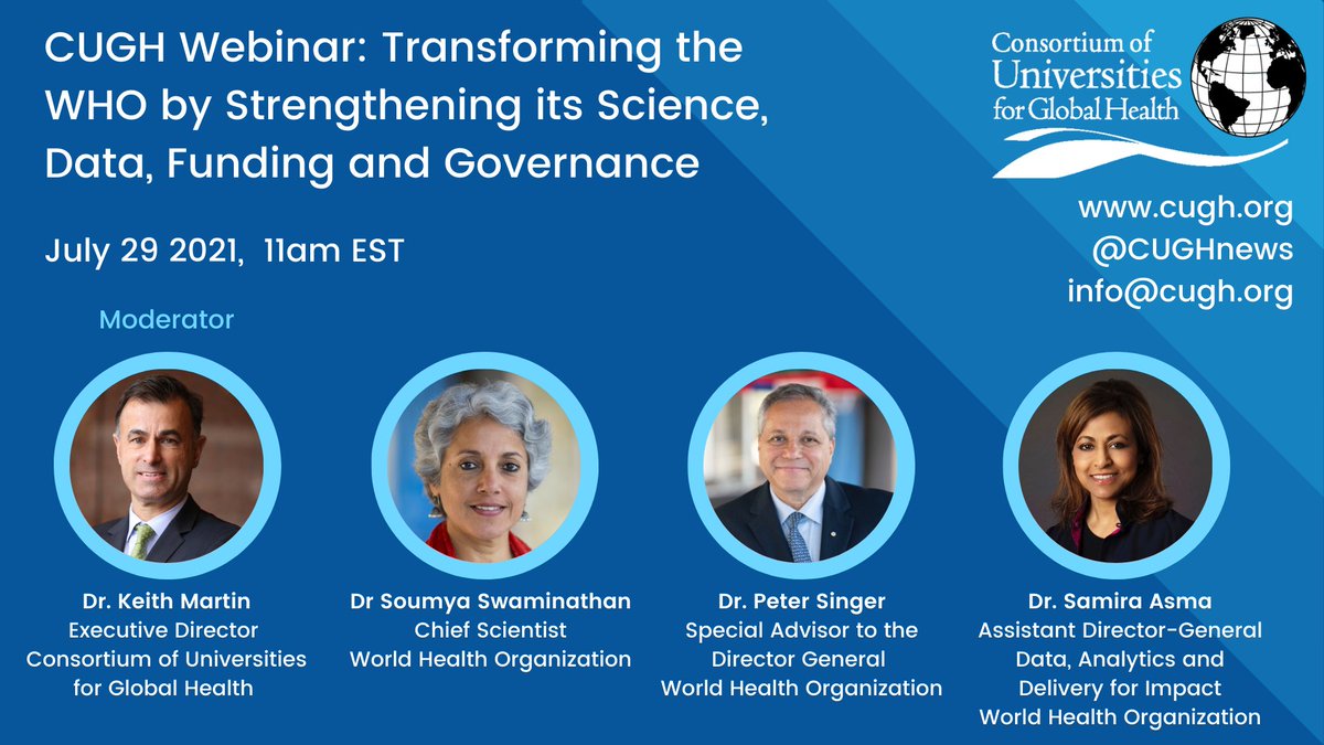 Register for CUGH's upcoming webinar: Transforming the @WHO by Strengthening its Science, Data, Funding and Governance. Join us on July 29th at 11 am ET along with @doctorsoumya @PeterASinger and @DrSamira_Asma. Moderator: CUGH Exec. Dir. @keithmartinmd https://register.gotowebinar.com/register/3893947234222692111 …pic.twitter.com/PiRrLK8lAf