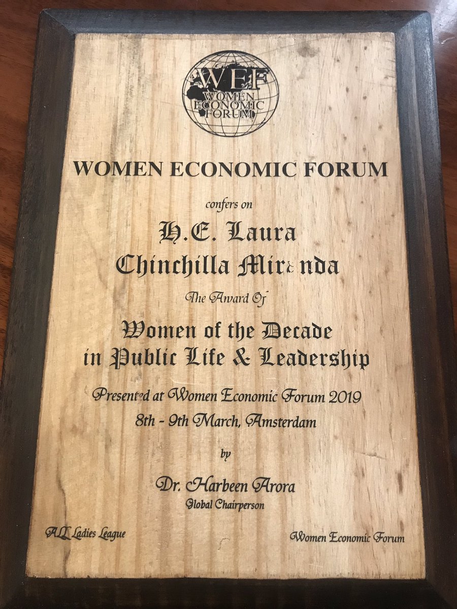 Congratulations to Council Member and former President of Costa Rica Laura Chinchilla Miranda for the World Economic Forum Award of “Women of the Decade in Public Life & Leadership.”