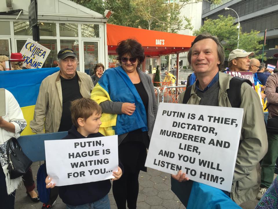 .@charlierose .@CBSNews .@60minutes #CharlieRose #CBSNews #Putin #Hague got it? photo from protest outside #UNGApic.twitter.com/NihfsX4rol
