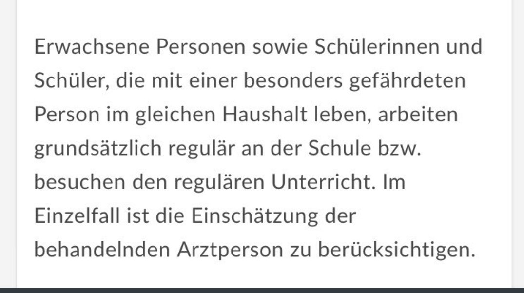 Ich verstehe die Sorgen der Familien, bei denen 3 Generationen in einem Haus leben. In so einem Fall sollte man auf jeden Fall auch das Gespräch mit der Schulleitung suchen, um möglichst eine für alle zufriedenstellende Lösung zu finden. Letztlich kann aktuell keiner vorrausagen