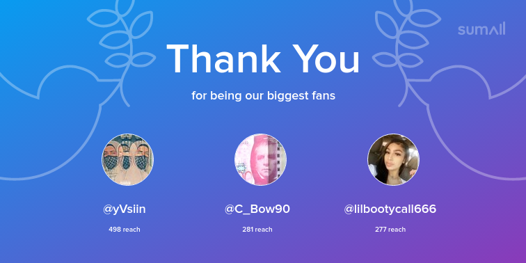 Our biggest fans this week: yVsiin, C_Bow90, lilbootycall666. Thank you! via https://sumall.com/thankyou?utm_source=twitter&utm_medium=publishing&utm_campaign=thank_you_tweet&utm_content=text_and_media&utm_term=798be9b90a290e7af1f58971 …pic.twitter.com/apMiD4muwE