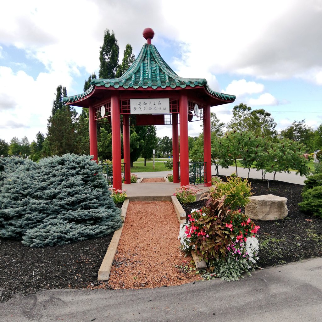 Victoria Lawn Cemetery, St. Catharines, ON: The Chinese Pagoda, erected by "The Chinese Community & Friends." A beautiful spot to stop and collect your thoughts on a summer's day. Canada's multicultural character is reflected in its cemeteries, especially the larger ones.pic.twitter.com/VoeVgnz5nP