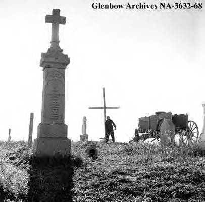 "Monument in Métis Cemetery, Batoche, Saskatchewan," 1950s. "Erected in memory of Metis who died in 1885 [Battle of Batoche]. Names listed are: J. Ouellette; J. Vandal; D. Ross; I. Boyer; M. Trottier; A. Letenorc; D. Carriere; J. Swain; A. Jobin; C. Tourond; E. Tourond."pic.twitter.com/j0G38fVnpB