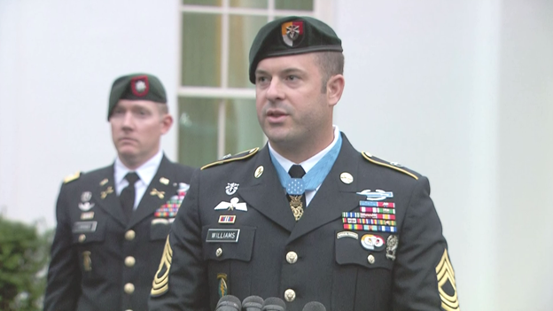 In a statement to reporters after receiving his Medal of Honor, MSG Matt Williams said he's "humbled by this whole experience." He says the Medal he's now wearing is not for him, and credits his Special Forces comrades as "the real reason that I’m standing here today.”pic.twitter.com/WFA2wOBXsD