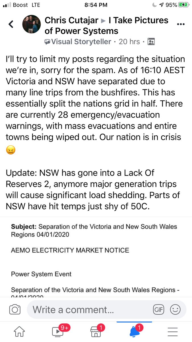 This is a post from a mate of mine in Melbourne Australia. The power grid is being devastated by these fires and the country is literally under attack.pic.twitter.com/JIwwgvMzBS