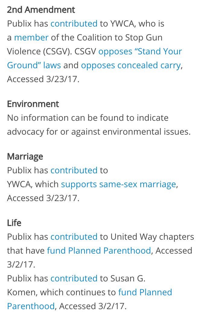 Thank you No funding for murderous Planned Parenthood and same sex marriage!!! BRILLIANT!! GO PUBLIX!