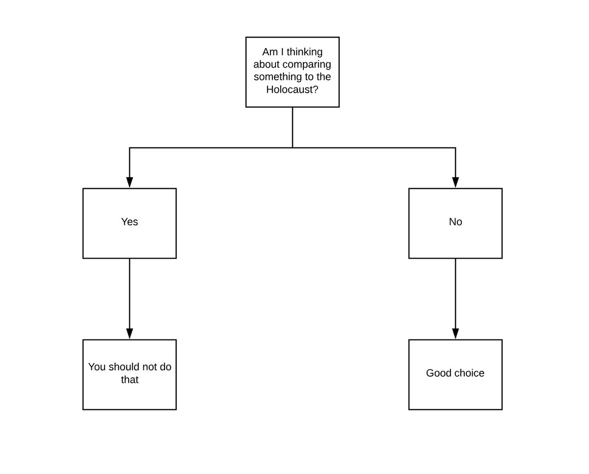 The only correction I would suggest is an arrow pointing from the caution to think against comparing something to the Holocaust to the original question.