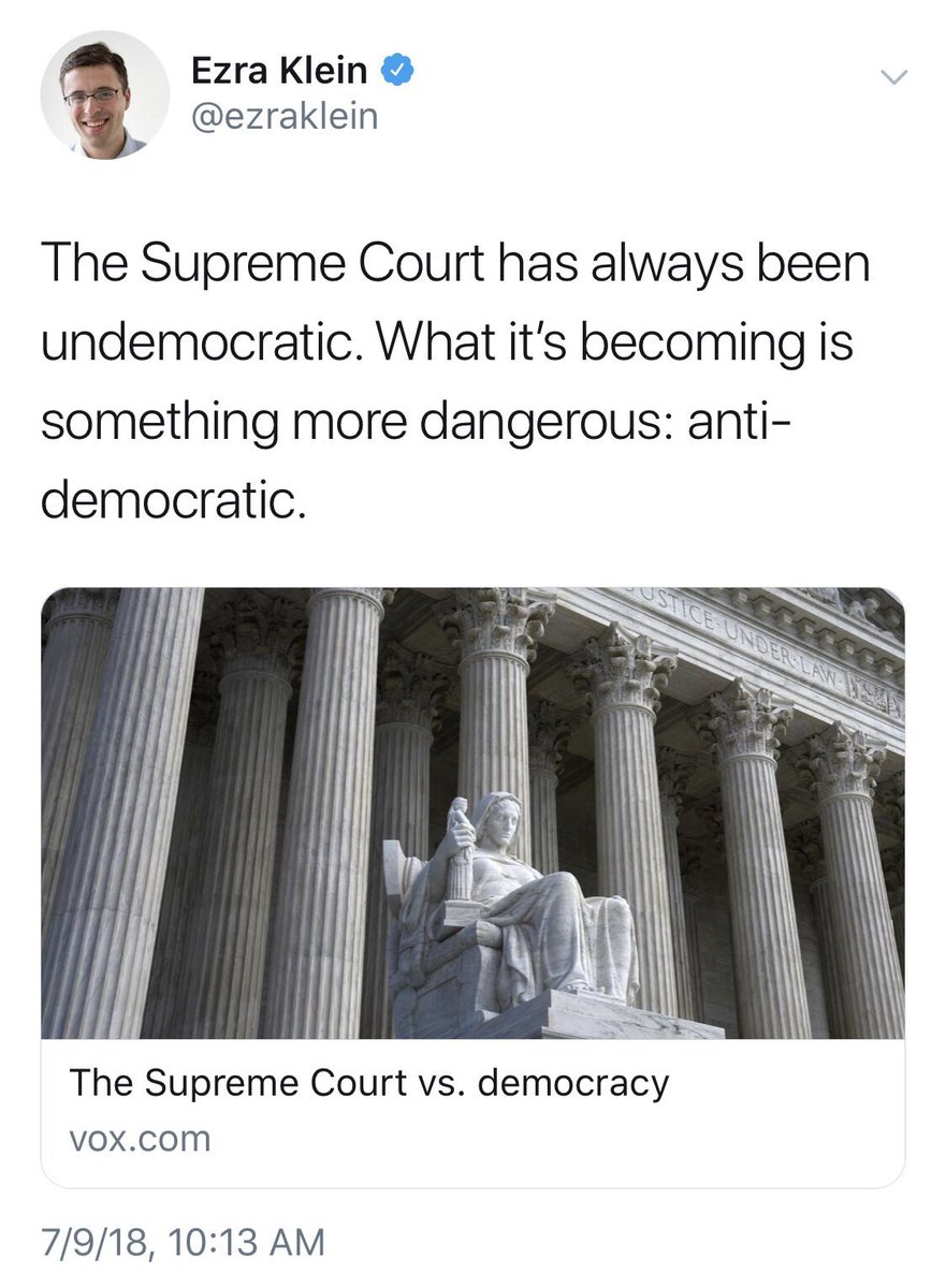 @ezraklein the entire United States of America was founded as a constitutional republic; not democratic. Democracy has no place in a truly free society; the rule of law trumps democracy.Thanks. Twitter will use this to make your timeline better. UndoUndo