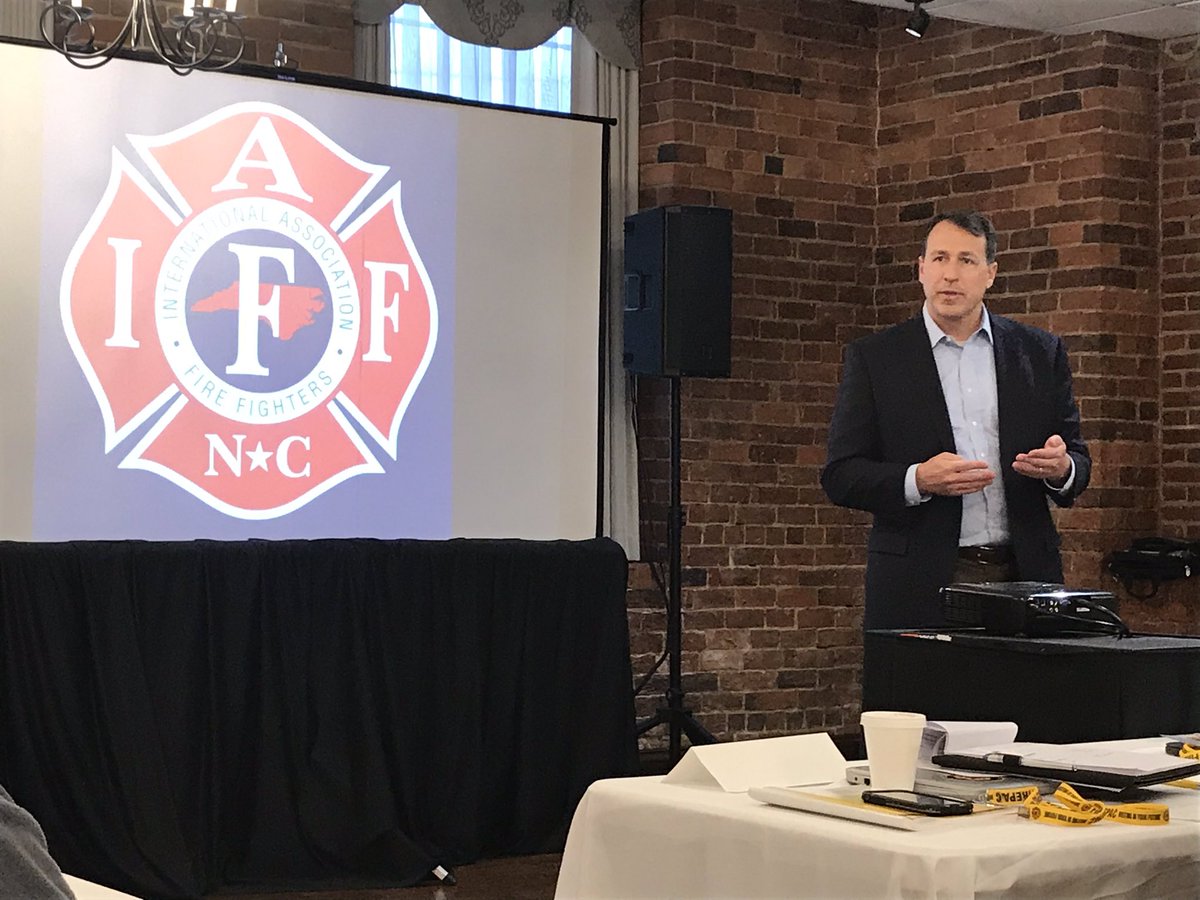 @CalforNC addressing Local 332 members and others in attendance at the IAFF’s NC Political Training Academy this afternoon. Attendees have spent 2 days sharpening their skills in terms of how to more effectively act politically for NC firefighters.pic.twitter.com/oSnq8pMQwO