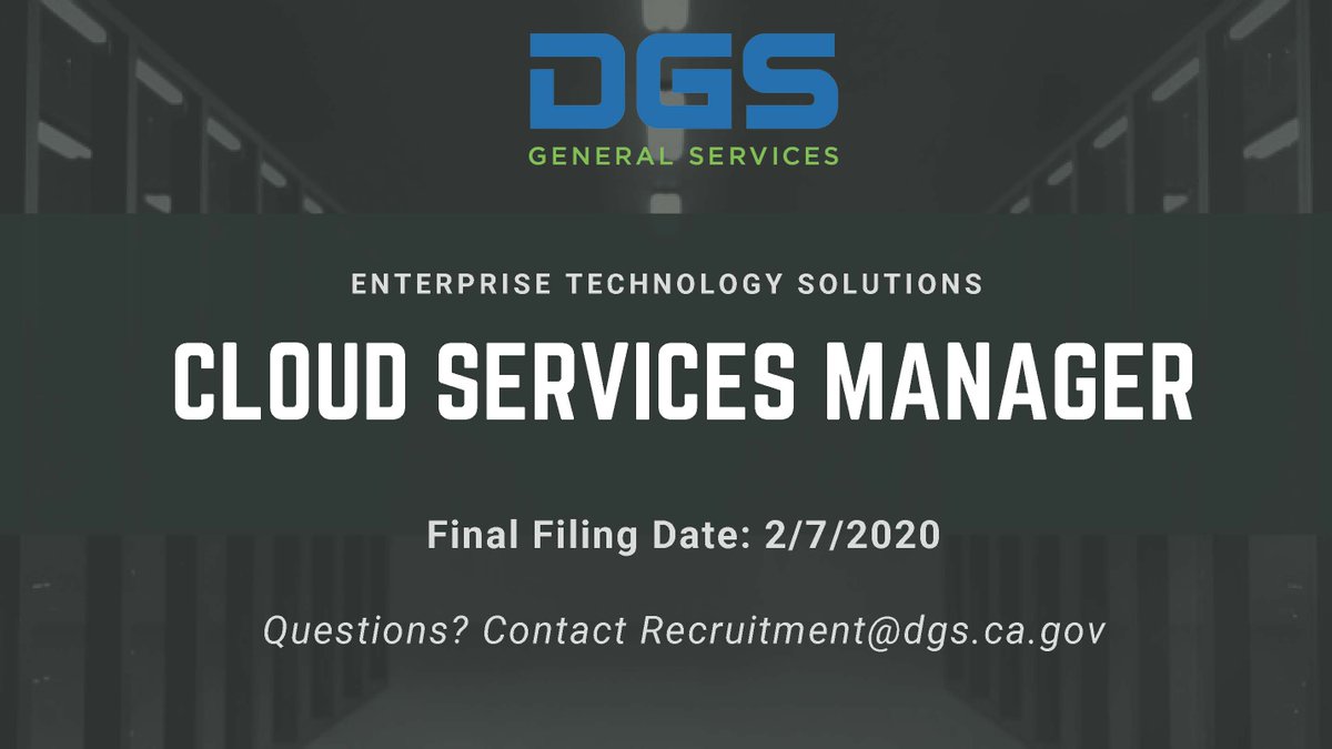 Are you an experienced senior level technical manager who is eager to find a career providing high quality and innovative solution leadership? If so, the Office of Enterprise Technology Solutions is seeking a Cloud Services Manager! Apply today! http://bit.ly/38NelI4 pic.twitter.com/tBHmmOZIcs