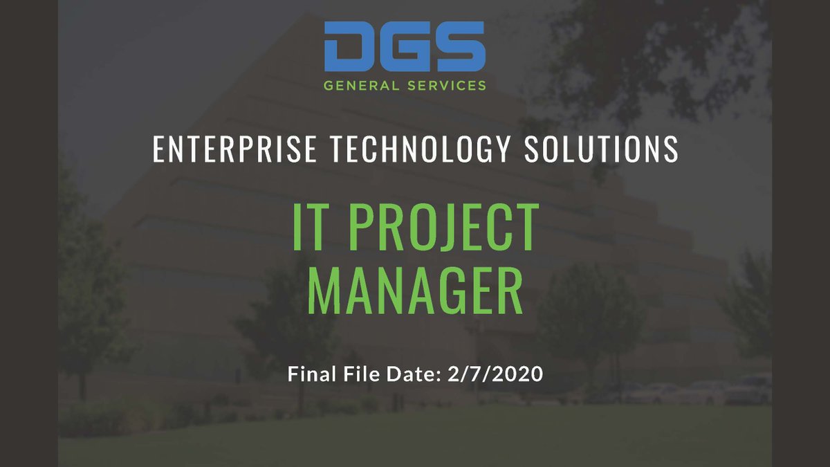 Are you an experienced Project Manager who wants to embark on a new career that offers stability and work-life balance? Apply to our IT Project Manager opening today! Contact Recruitment@dgs.ca.gov with questions.pic.twitter.com/kVtitkpy9Y