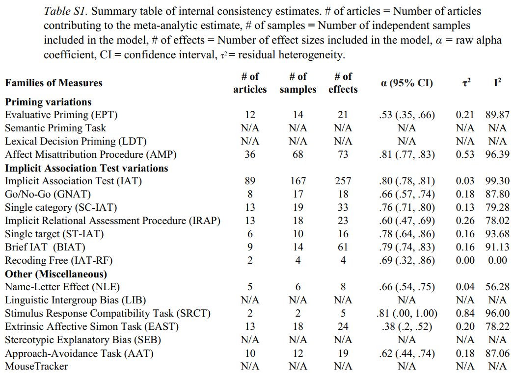 @AnnualReviews paper. Check out our meta-analyses of the published literature on the internal consistency & test-retest reliability of 18 implicit measures (https://osf.io/sh6gy/ )pic.twitter.com/PkKMzvj6yW