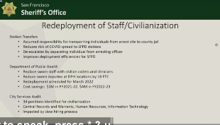Miyamoto: while we're committed to responding to DPH concerns about Sheriff presence. Main concern is to make sure response times aren't affected, working on that.
