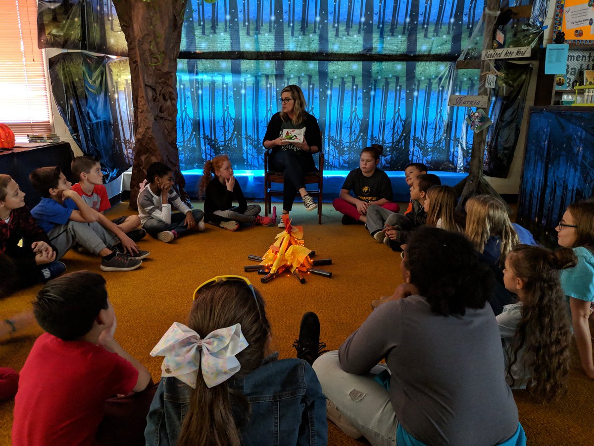 Mrs. Holland treats Mrs. Via's 2nd graders to a Halloween tale at their Halloween library campfire. #camscotsproudpic.twitter.com/QG9KeVvJ7I