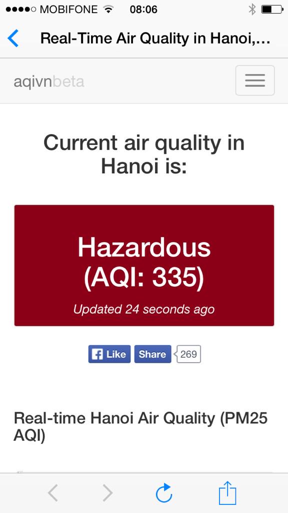 Air quality in Hanoi now at the same level as Beijing.pic.twitter.com/HdMwGCa4RF