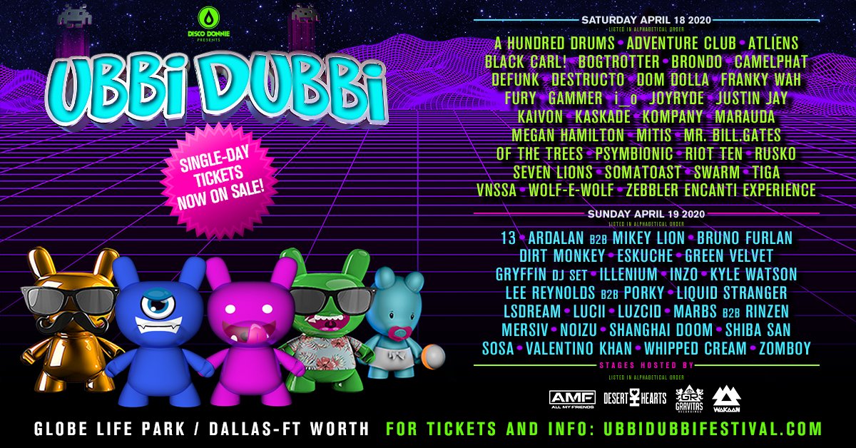 Will you be joining Ubbi and Dubbi on Saturday for @AdventureDub,@CAMELPHAT,@Kaskade, and@SevenLionsMusic OR on Sunday for@GreenVelvet_ ,@gryffinofficial,@ILLENIUMMUSIC, and@LiquidStranger??? Tickets: http://hive.co/l/ubbidubbi2020 pic.twitter.com/wimkj9w9LJ