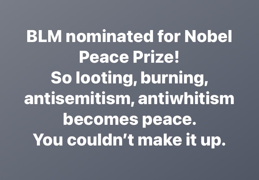 Great! Blm antisemites destroyed a synagogue burnt down kosher shops vandalised another synagogue threaten churches Antisemitic leaders of the movement here in the UK and US is going to be awarded a peace prize ? here is my response go to fucking hell