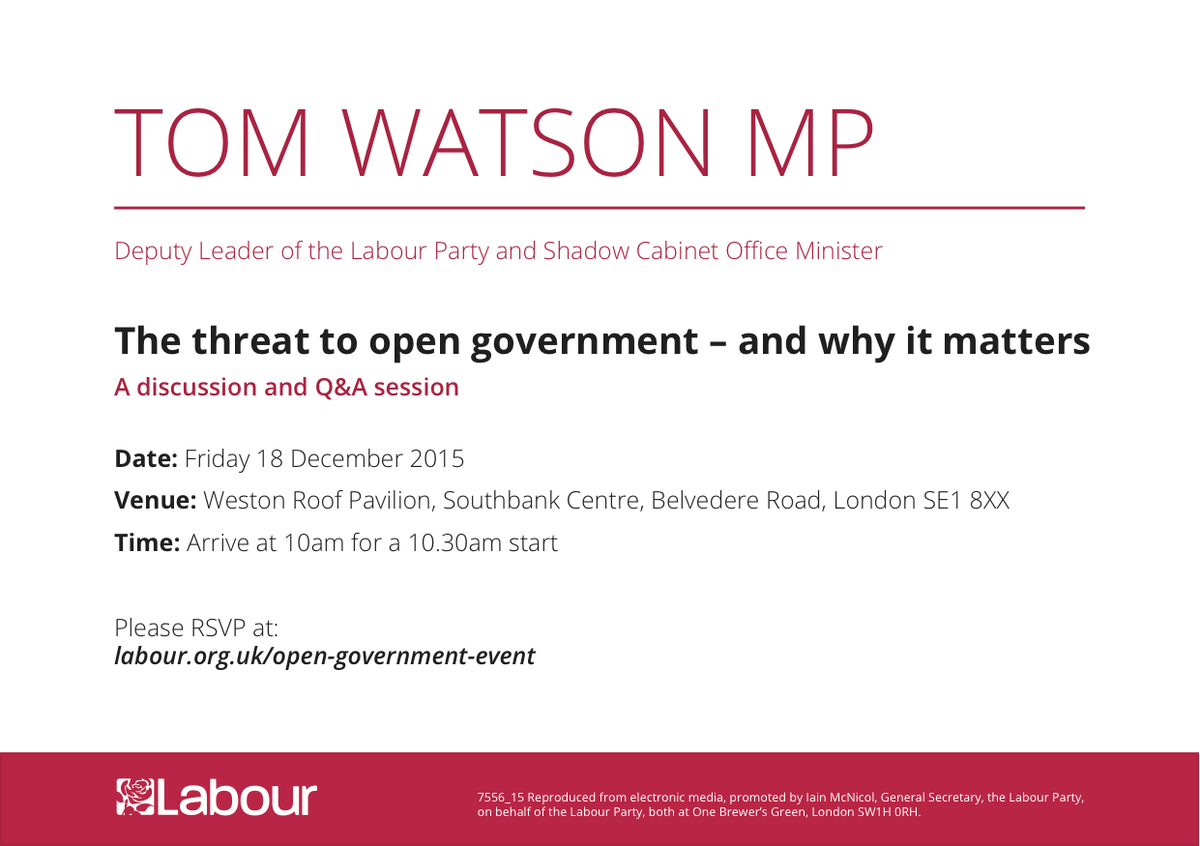 The threat to open government - and why it matters, a discussion with @tom_watson, RSVP http://labour.org.uk/open-government-event … #FOIpic.twitter.com/MMqnw7bXdE
