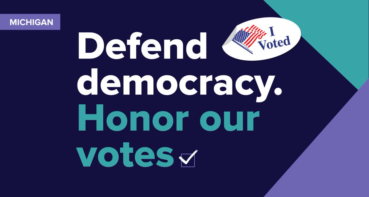 #VotersDecided the November general election, and in our democracy, ‘we the people’ means voters of every color and creed, background and zip code. Today, Michigan State Board of Canvassers,#DoYourJob and certify the will of the people.#AllEyesOnMIThanks. Twitter will use this to make your timeline better. UndoUndo -
