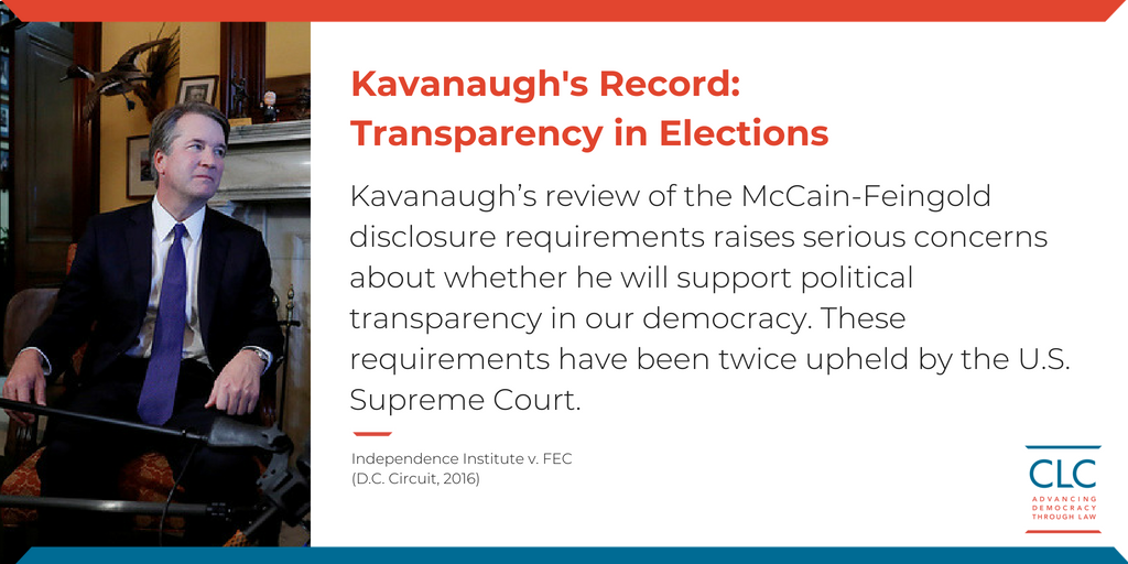Judge Brett Kavanaugh’s record indicates he would not protect the voters right to know. #WhatsAtStakepic.twitter.com/zE0rwkKSUF