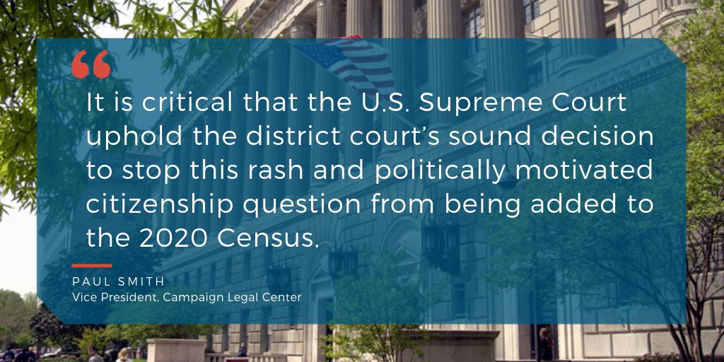 BREAKING: #SCOTUS will hear a case brought by the New York State Attorney General about whether the controversial citizenship question will be allowed to be added to the #2020Census. Read more: https://campaignlegal.org/press-releases/supreme-court-will-hear-arguments-case-administration-decision-add-2020-census …pic.twitter.com/uDmI85bNL9