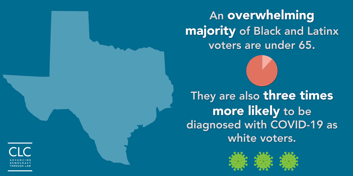 An overwhelming majority of Black and Latinx voters are under the age of 65. They are also 3x more likely to be diagnosed with #COVID19 as white voters. #Voting should be accessible for all. It's time for #Texas to give every voter the option to vote absentee this fall. #txpolipic.twitter.com/lUl60Ln79w