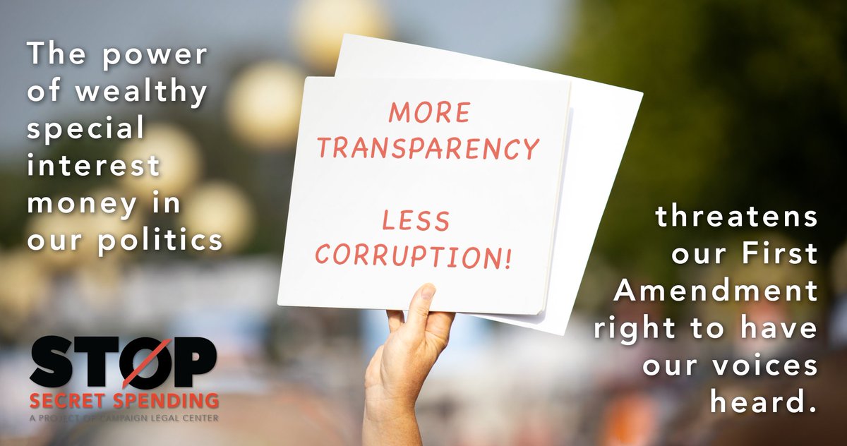 The flow of unlimited, secret spending into our elections threatens our First Amendment right to have our voices heard. To learn how we can restore transparency, reduce corruption and protect our First Amendment rights, visit http://StopSecretSpending.org . #StopSecretSpendingpic.twitter.com/nR4PWhfBfy