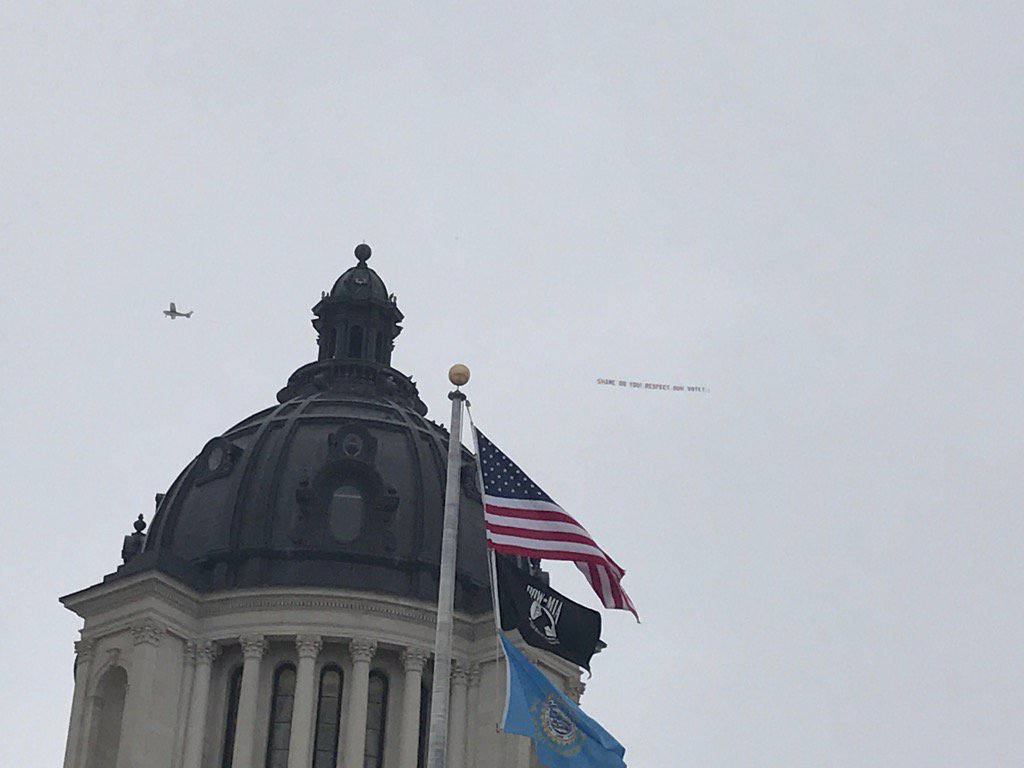 Will #SDleg look up at the sky before they head into the capitol building to vote on repealing voter-approved ethics reforms?https://twitter.com/bydanaferguson/status/826849928785846272 …
