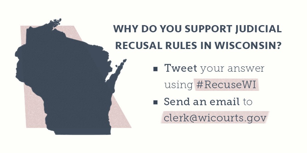 New recusal rules for judges receiving campaign donations necessary to restore confidence in #WI courts #recuseWI http://bit.ly/2nnFZaH pic.twitter.com/X1J7cXceq5