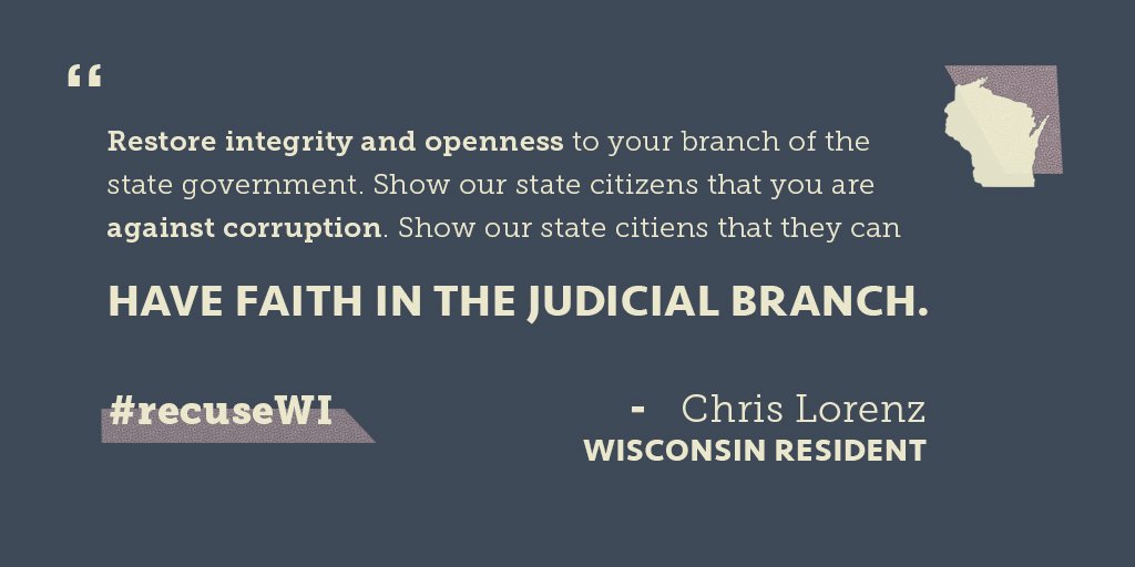 STATEMENT: Wisconsin must move forward with new rules to assure the public that justice is not for sale #RecuseWI http://bit.ly/2pH4f8v pic.twitter.com/22xmfJ3goG