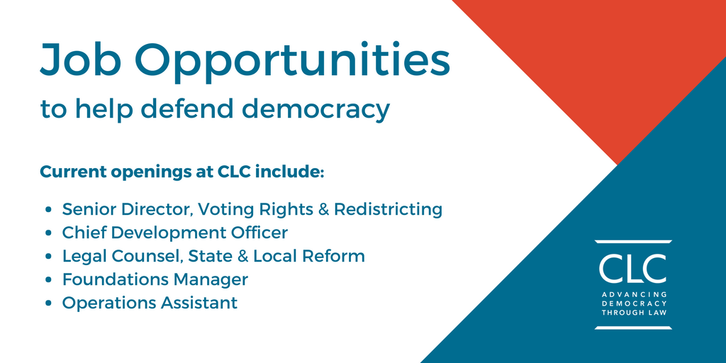 Spread the word! The CLC team continues to grow. Great opportunities available to lead our work on voting rights and redistricting, expand our state and local program, support our work via fundraising, and more. Details and instructions: http://www.campaignlegalcenter.org/about/jobs-internships …pic.twitter.com/37lA7kclJu